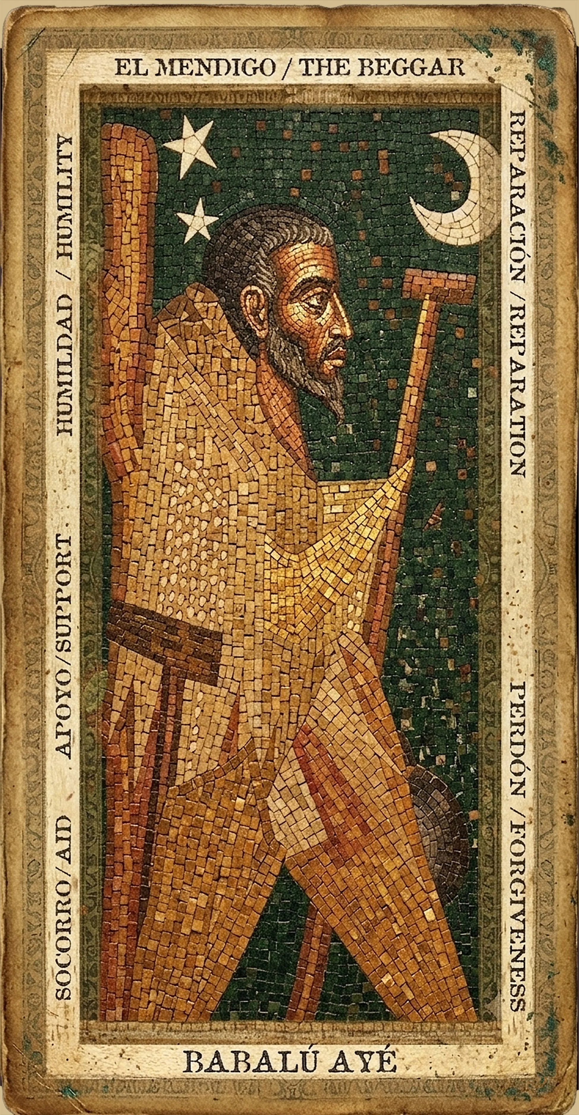 Babalú Ayé, en su luz, remite al cuidado, la escucha y la reparación: es el arquetipo que te devuelve a lo vulnerable pero verdadero, y te recuerda que no todo debe ser conquistado; hay cosas que deben ser sanadas. Cuando aparece, te sugiere que la respuesta a tu pregunta personal no se encuentra en la fuerza bruta ni en la prisa por “ganar”, sino en una forma de amor más sabia: la que incluye, protege y repara. Es la carta que te invita a reflexionar sobre qué cosas o qué relaciones pueden ser reparadas en lugar de ser arrojadas o sustituidas.